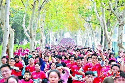 拥有百万在校大学生的武汉充满活力。2019年11月24日,华中科技大学在校园里举行长跑活动 记者高勇 摄