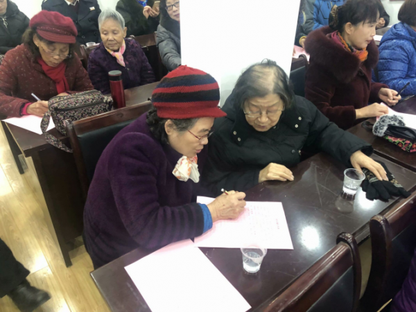 长江日报融媒体1月17日讯(记者史强 通讯员姜敏)签下自己名字,存下一份爱心。1月17日上午,汉阳区建桥街冰塘社区举办2019年度志愿者表彰大会,会上正式启动志愿者“时间银行”项目,73名志愿者现场在“时间存折”上签下名字,将用自己的爱心和付出为社区居民服务。