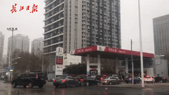 私家车排队加油