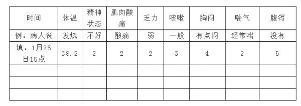 除了体温,其他的填数字1~5,1是感觉受不了,非常难受或者非常差,5是完全好转。如果都是5,那就好了,如果和之前比很多数字变小了,或是某一项到1了,就要赶紧联系医生了。