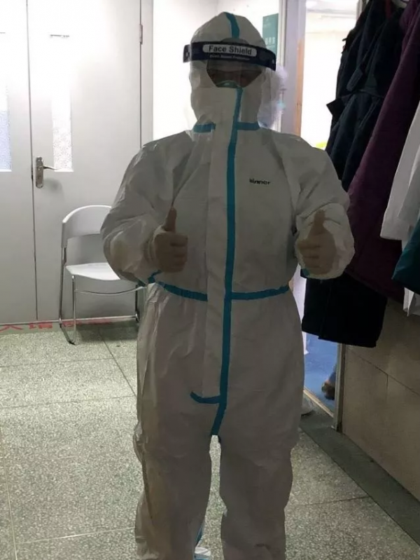 童朝晖身着防护服。