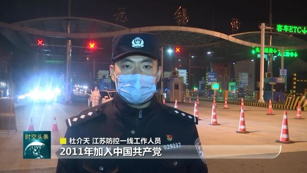 江苏防控一线工作人员杜介天说:“我出生于1990年,2011年加入中国共产党。”