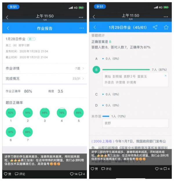 从大年初三开始,高三年级就已经通过微信群、qq群为线上学习做准备。思政教师田英、数学教师徐琴率运用教学APP为高三学生提供了总复习模式,涵盖全国各省市近六年高考真题和近四年模拟题。地理老师高荣在线画思维导图,历史老师李捷在线批阅作业,语文、英语教师则通过网盘分享阅读技巧。
