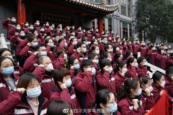 四川大学华西医院,131 名医疗队成员重温医学生誓言: