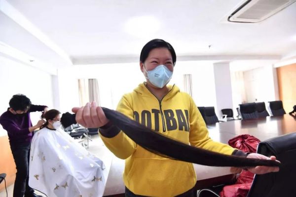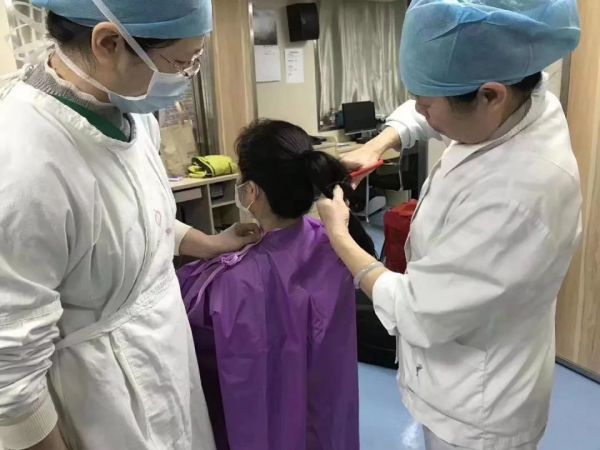 护士刘肖雅在出征前剪掉自己蓄了 5 年的长发。