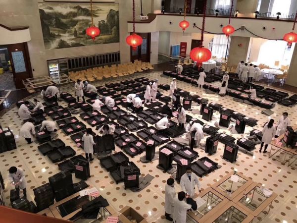 复旦大学中山医院派出 30 位医生和 100 位护士组成的医疗队去武汉抗疫前线,医院后勤部门,连夜为医疗队员配齐物资「把家底都给医疗队带上了」。