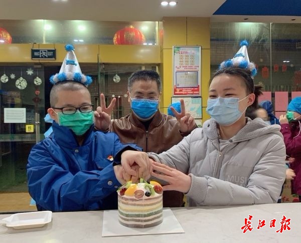 重庆援汉医护人员在汉过生日,一起切蛋糕