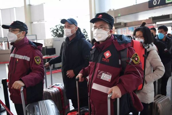 1月28日,甘肃首批医疗救治队的医护人员从兰州中川国际机场出发前往武汉。