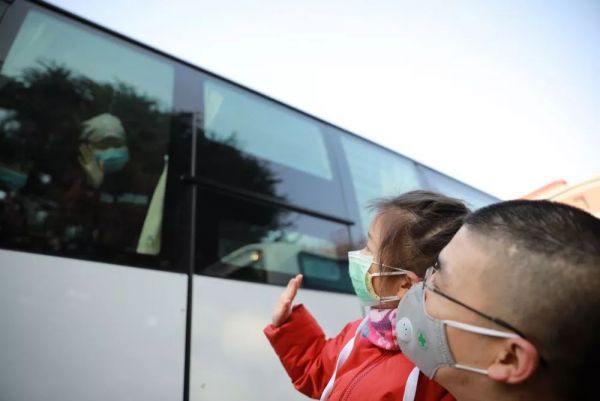 2月16日,甘肃省第四批援助湖北医疗队队员的家属挥手送别亲人。当日,甘肃省第四批援助湖北医疗队从兰州启程,奔赴武汉。