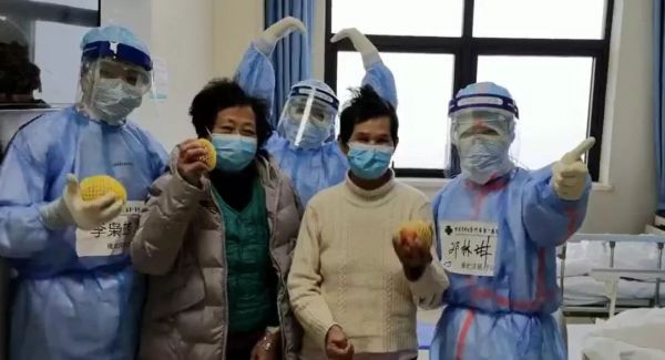 辽宁医疗队员鼓励病人积极乐观战胜疾病