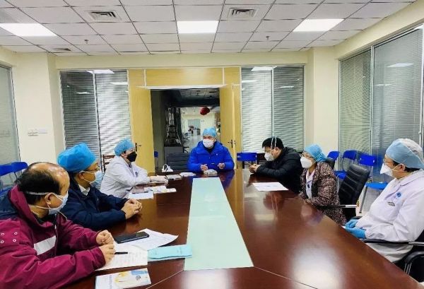 抵达武汉当日,10日9时,立即前往华中科技大学同济医学院附属协和医院西院区(下称武汉协和西院)与院方进行工作对接。在听完协和医院的介绍后,感到形势比预期的更加严峻。武汉协和西院是武汉市及周边地区新冠肺炎重症和危重症病人的定点收治医院。时间紧迫,刻不容缓。医疗队治疗核心小组马上调整工作方案,将病房病人实行轻重分离管理,重症病人分级筛选,分组管理,每组由固定医生小组负责,组长相当于病房主治医师,便于迅速掌握病人信息,制定个性化治疗方案。护理组由重症医学、呼吸与危重症专业的骨干护士牵头,这样,每例重症病人都有相对固定的责任医生和责任护士。设立三级查房制度,有针对性的对重症和危重症病人实施个体化治疗。在院感防护方面,先集中,后分组,进行感染防护的实操培训,并以小组为单位进行穿脱防护用具的考评,务必确保医护人员的医疗安全。