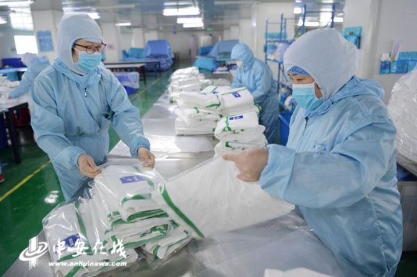合肥一家企业内,工人正在赶制医用物资
