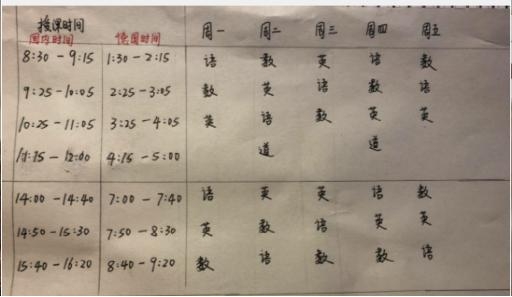 曹煜制作了一个时差对照表,时刻提醒自己现在是国内什么时间,保证每堂课准点直播,增强学生上课的真实感。备课时没有教具,她就用各种自制工具替代。上平行线的时候,她用硬纸壳做了一个重要的数学模型。