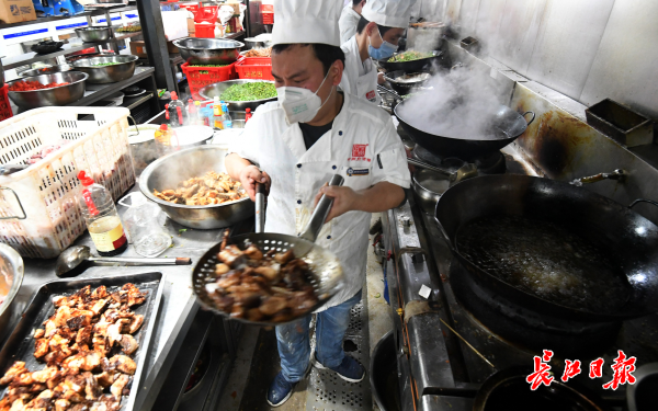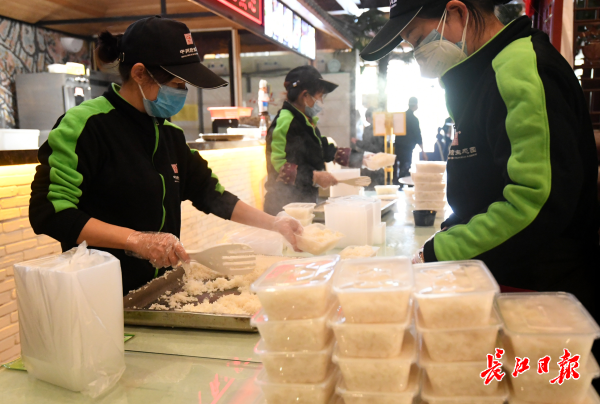 长江日报-长江网2月25日讯 2月25日,武汉中州府酒店,50多名酒店员工忙碌不停地制作工作餐。自2月9日以来,位于东湖高新区的中州府酒店根据防疫指挥部安排,承担起山东、辽宁、浙江、江苏、广东省援汉医疗队工作餐的任务。从每天凌晨4点一直到晚上9点,要烹制4餐共5500份盒饭。该酒店调集10多位大厨,根据各省医疗队的不同饮食习惯,分别制作医疗队员家乡的菜品,满足不同省份医护人员的口味,并严格把控餐食卫生,保证一线战“疫”人员食品安全。(记者李子云 摄影报道)