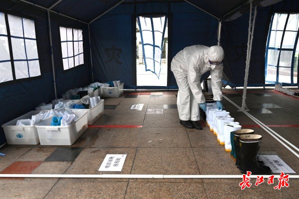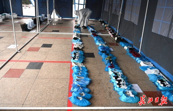 长江日报-长江网2月26日讯 2月26日,江汉区文旅局驻阳光酒店专班对入住酒店的内蒙古援汉医疗队提供高质量的保洁服务,除对医疗队的消杀帐篷进行功能升级外,保洁人员还将帐篷内队员们的服装、鞋套摆放得整齐划一、井井有条,让医护人员每天心情舒畅、快速便捷地投入到抗击疫情的战斗中。(记者金思柳 通讯员张线 摄影报道)
