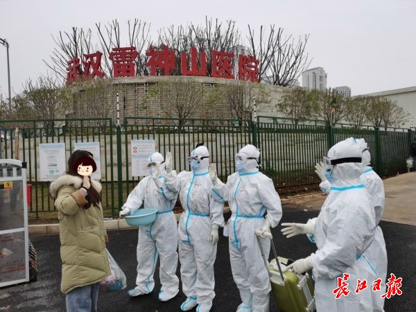 中午12点,当日出院的首批患者陆续走出雷神山医院大门。王女士在5位护士的陪同下,坐上在医院门口等候多时的专车,向护士们挥手告别。王女士老家在河南郑州,大学毕业后在光谷一家动漫公司上班。2月8日,她被确诊为新冠肺炎,10余天低烧不退并伴有咳喘,18日被转送到武汉雷神山医院B3病区治疗。由于独自一人在武汉生活,王女士坦言刚住进医院时心情很低落,但病区里来的护士们对自己非常关照。