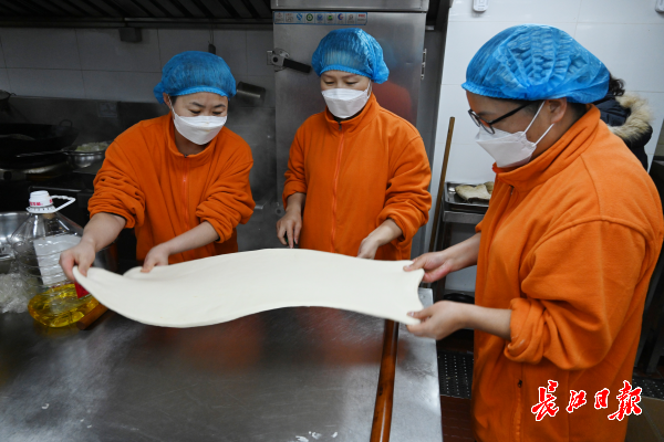 7日,陕西天佑援鄂医疗队入住该酒店,江汉区文化和旅游局驻柏曼医疗保障专班负责后勤保障工作。前几天,医生们听说专班队员想吃油泼面,便特地买来食材。27日适逢休息,这些平时拿惯了听诊器、注射器的大夫们,挽起袖口、拿起擀面杖,做起了陕西特色的油泼面,想把这“家乡的味道”分享给武汉的“亲人”们。