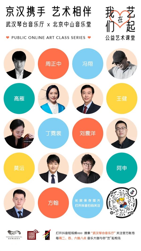 《“京汉携手,艺术相伴”我们在“艺”起》公益艺术课堂将从3月7日持续至21日,于每周二、四、六晚8时在“武汉琴台音乐厅”官方抖音号开始线上直播。