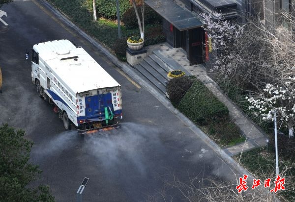 大型专业消毒车对社区路面进行消杀,大大提高了消杀工作效率。 记者高勇摄影