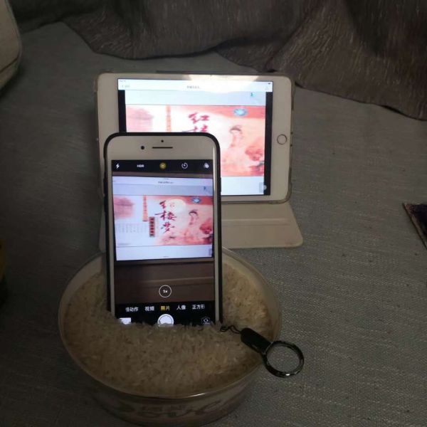 装满大米的大碗秒变讲台,这是该校青年教师杨丹的绝招。杨丹是高一语文老师,为提高教学时效,充分调动学生学习积极性,小杨老师的手机、平板齐上阵。“手机用来直播互动,平板用来放PPT。”杨丹解释,那个装米的碗相当于支架。
