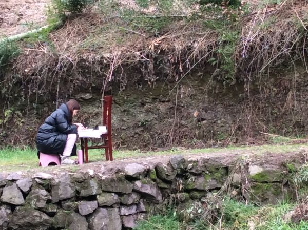 把讲台搬到山上,低着头写写画画。这不是野外写生,这是武汉市第二十六中学青年教师凤杨静在网上直播高一化学课。凤老师5日介绍,过年她滞留在安徽霍山县老家,家门口正好是一座山,家里手机信号不好。所以为了减少直播教学中的卡顿现象,她把“讲台”搬到了半山腰。