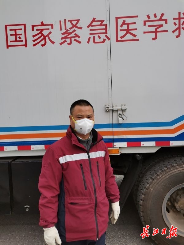 49岁的徐建是国家(四川)紧急医学救援队队员,也是物资装备车驾驶员。2月5日凌晨3点,他和其他队员连续驾驶22小时抵达武汉。