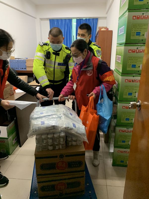 6日还有一批防护物资急需分发各街道,需搬运力量。得知消息后,武昌区交通大队发动队内力量,汉警快骑队员蔡俊、李勇主动请缨,利用中午休息时间赶赴现场。