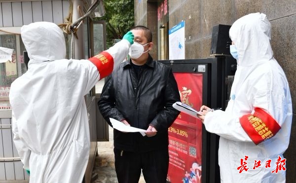 2月初,刚完成援疆3年任务,返回武汉还在家里休假的刘双武听说下沉社区急需党员干部,他二话没说就积极报名在这里上了岗。一个多月来,他没有节假日,每天穿着一身行头的防护服从早上8点多钟,要忙到晚上快九点才回到家中。他和另外3名战友一道,为出入人员测量体温,检查每一辆进出车辆,登记资料台账、劝说无关人员不要随便出门,每天还要帮助快递公司搬运爱心捐赠物资。