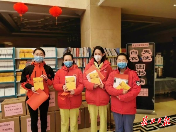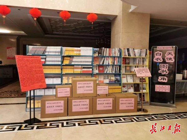 长江日报-长江网3月10日讯 3月8日,武汉图书馆与江岸区委直属机关工委、江岸区文化和旅游局在黑龙江援鄂医疗队下榻的高雄大酒店,设立“白衣天使图书角”,提供500册书刊供借阅,后续将不断更新,并为医护人员提供数字资源的免费下载,为医护工作者消除鏖战疫情产生的紧张情绪,缓解持续奋战带来的身心疲惫,让他们在有限的休息时间里能得到精神的慰藉与充分的放松。