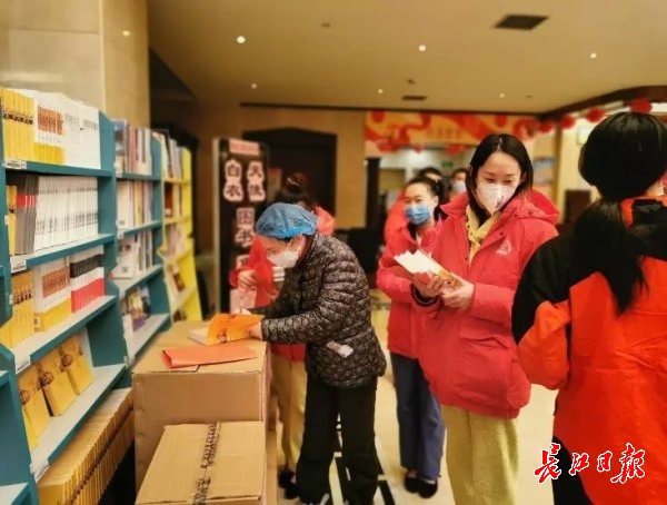 医护人员收到赠送的图书非常高兴,纷纷请李馆长签名,表示要通过阅读深入了解武汉这座英雄城市的历史和风貌。