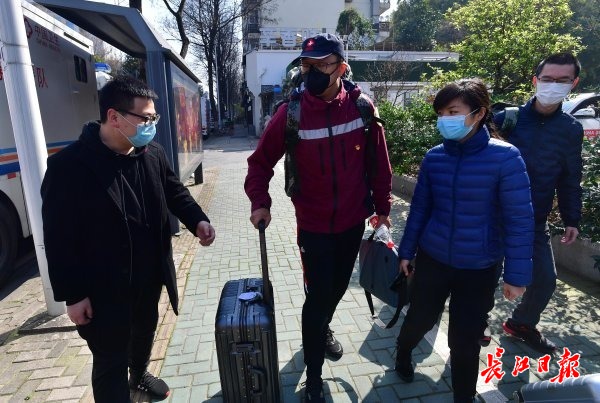 长江日报-长江网3月17日讯(记者王震)“再见!欢迎再来武汉做客游玩!”江汉区负责援汉医疗队后勤保障的工作人员挥手告别,一辆辆大巴车从“向奋战在疫情防控一线的医护人员致以崇高敬意”的横幅前驶过。