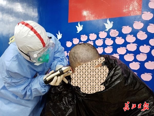 为病患推剪头发 马开成 供图