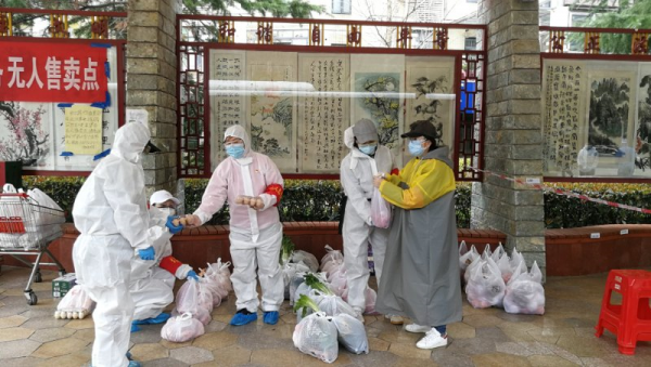 娘子军为社区居民分发蔬菜包 通讯员刘燕供图