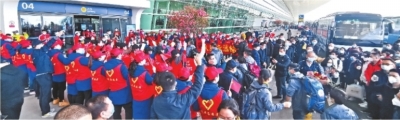 3月17日下午3时,武汉客厅广场,阳光暖洋洋地照耀,他们即将踏上回家路。
