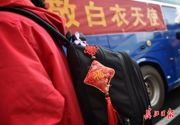 队员背包上挂着福字饰品 记者郭良朔 摄