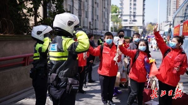 长江日报-长江网3月18日讯 18日是内蒙古援鄂第三医疗队回家的日子,为了给他们留下武汉春日的美丽记忆,负责护送的洪山区交通大队专门制定了一条最美回家路——途经东湖。
