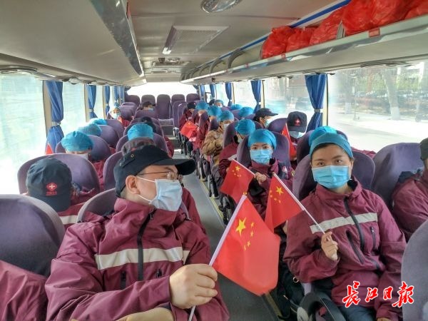 9时40分,在汉警快骑队员们的警车护送下,医疗队乘坐大巴离开酒店,奔向机场。