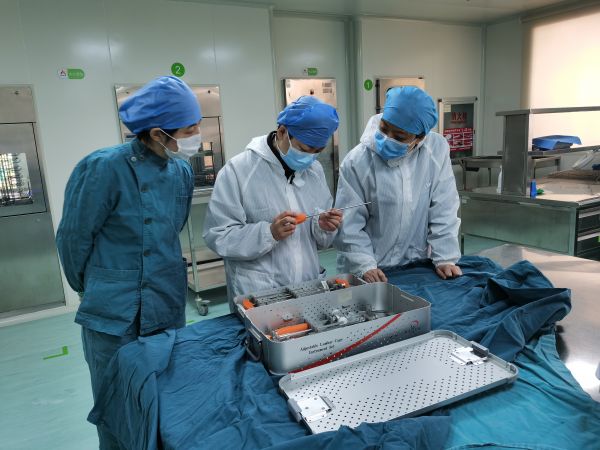 消毒供应中心内,国家卫健委院感防控专家组成员、青岛大学附属医院院感科医生秦文一件一件拿起医疗器械,细致检查。