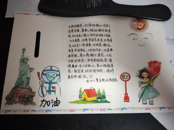 长江日报-长江网3月27日讯(记者王春岚 通讯员高琛琛)住院期间得到“大白阿姨”的精心照料,4岁女孩让爸爸握着自己的手,给医护写下了感谢信,送去自己做的“纸巾兔兔”;出院时,护士阿姨们回赠她两幅画,还写了回信:“生病的莲花,在大家的精心呵护下,变得坚强、勇敢。”