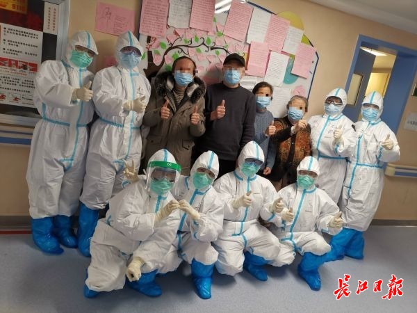 长江日报-长江网讯(记者王恺凝)3月27日,同济医院光谷院区E1-8楼病房7位患者出院,无锡援汉医疗队医护人员按照惯例送了每人一个苹果,寓意“平平安安”。一位老奶奶激动地说:“感谢无锡医疗队给了我和老伴第二次生命,多亏你们来武汉救我们!”