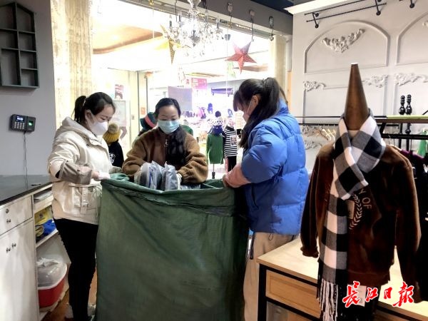 汉口北品牌服装城4楼21世纪童装生活馆内,7名营业员们正在忙碌地整理到店的春款新货。