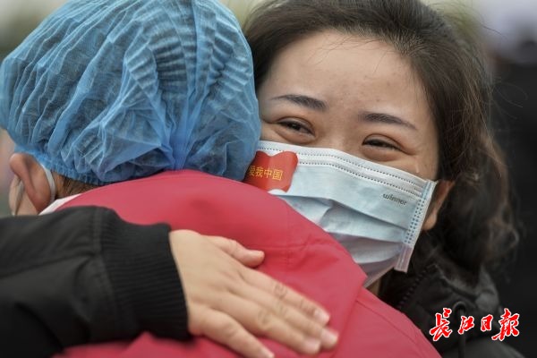 3月29日,武汉雷神山医院举行首批外省医疗队集中撤离仪式。临别之际,医护人员之间相拥而泣,难舍这份“战友情”。
