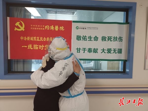 2月4日上午,我们第一次去同济医院中法新城院区的时候穿的就是这件蓝色的队服;3月28日,我们最后一次去同济医院中法新城院区的时候,穿的也是这件蓝色的队服。衣服还是那件衣服,人还是那个人,但是心境却大不相同。初到时,我们对这里有陌生有恐惧,而今天,我们满含热泪充满不舍。