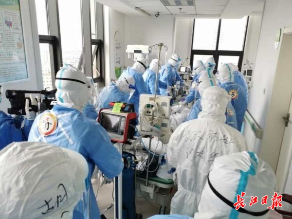 30日下午2时40分,长江日报-长江网记者在该院ICU看到,一区内有7名患者,全部有创通气,其中4人使用ECMO,江苏医疗队已经在病区内开展救治工作。