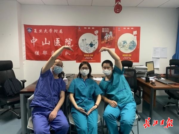 中山医院医生刘凯(右)和同事姚雨濛(中)、黄浙勇(左)合影 中山医院供图