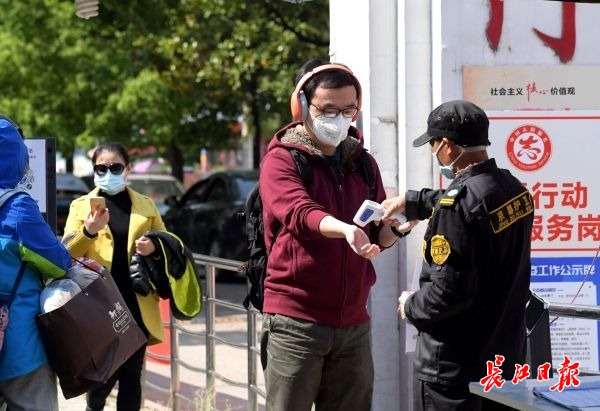长江日报-长江网4月12日讯 12日,天气晴好,高温下,东西湖区常青花园三社区四区出入口,疫情防控不放松。
