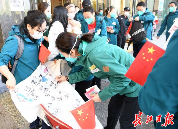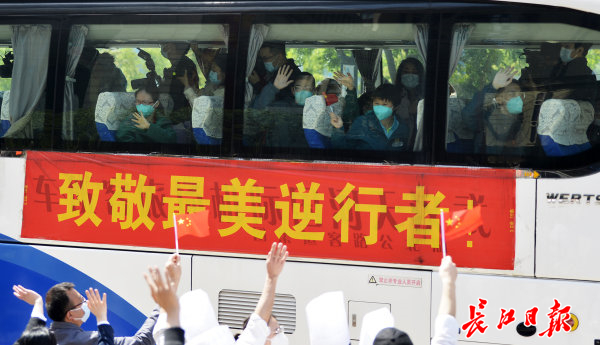 谢谢你们!北京协和医院援鄂医疗队离汉返京 | 图集 2020-04-15 13:47 长江日报-长江网 金振强 0 长江日报-长江网4月15日讯 4月15日, 北京协和医院援鄂医疗队180多名队员踏上离汉返京旅程,成为最后撤离的一支医疗队。出发时,来自武汉的 “战友”及市民前来送行。附近居民挥手向援鄂医疗队员们致谢。(记者金振强 摄影报道) 【编辑:付豪】 (作者:金振强)