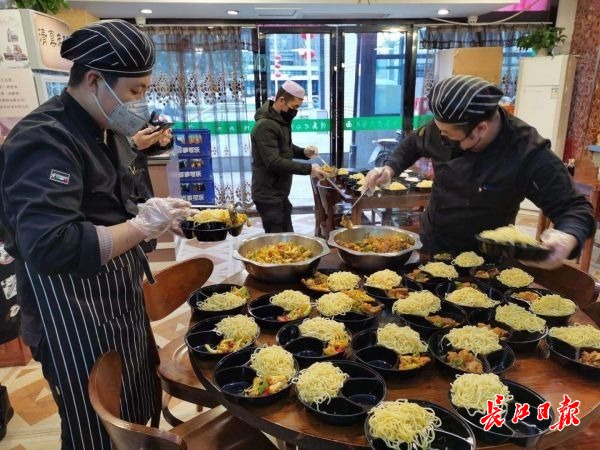 随后,处于歇业状态的餐厅比平时还要忙碌。令高春花感动的是,店里的30余名员工都很支持。“一半员工负责做饭、打包,一半负责送餐。”高峰时,一次要送700份餐。由于送餐地点分散各处,她介绍,每次就像是画“行军地图”一样,7台私家车在送餐前要确定路线,最远曾送到过距离餐厅60多公里外的新洲中医院。