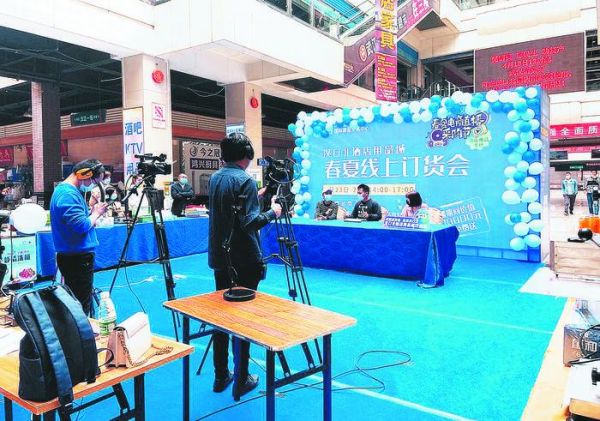 汉口北市场春夏线上订货会现场,两名主播和商户正在直播带货 仇莉娜 摄