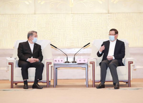 长江日报-长江网4月29日讯 4月29日下午,湖北省委书记应勇,湖北省委副书记、省长王晓东在武汉与亚布力中国企业家论坛理事长、泰康保险集团董事长陈东升领衔的企业家代表团座谈交流。